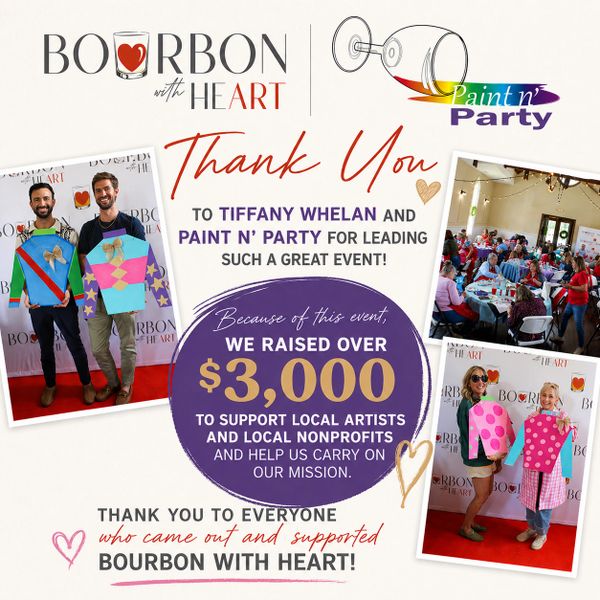 We raised over $3,000 from this workshop to support local artists and nonprofits and keep moving the mission of Bourbon with HeART forward.