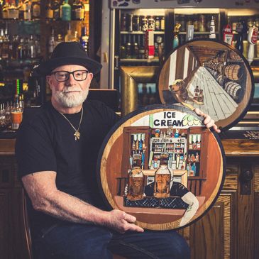 An art exhibit showcasing a unique collection of 50 bourbon barrel heads, each intricately hand-painted by a local artist over age 50. Celebrating the belief that, like a fine bourbon, we also get better with age.